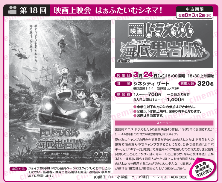 第18回映画上映会 はぁふたいむシネマ!『映画ドラえもん 新・のび太の海底鬼岩城』