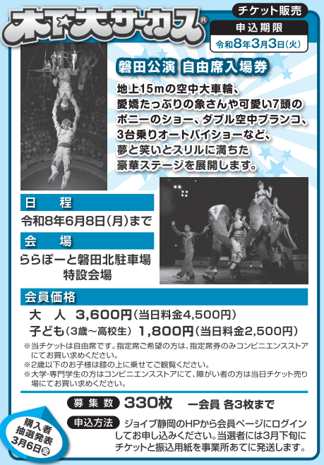【子ども(3歳~高校生)券 専用フォーム】木下大サーカス磐田公演 自由席入場券