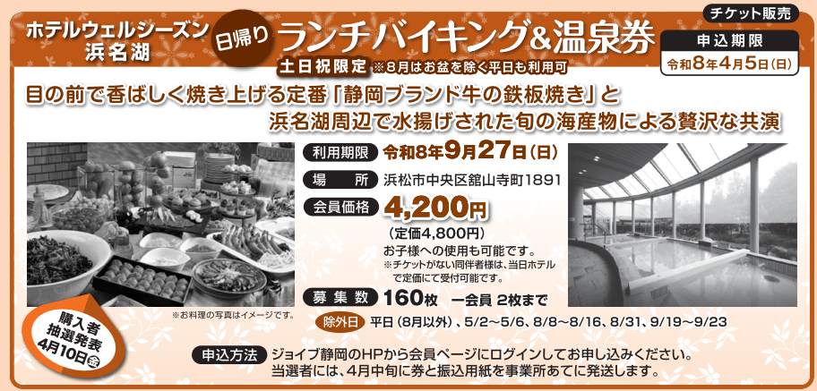 ジョイブ静岡の窓口で販売しています。非会員でも購入できるチケットもあります。