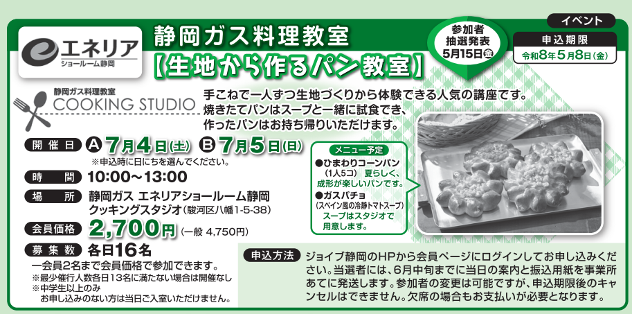 静岡ガス料理教室【生地から作るパン教室】