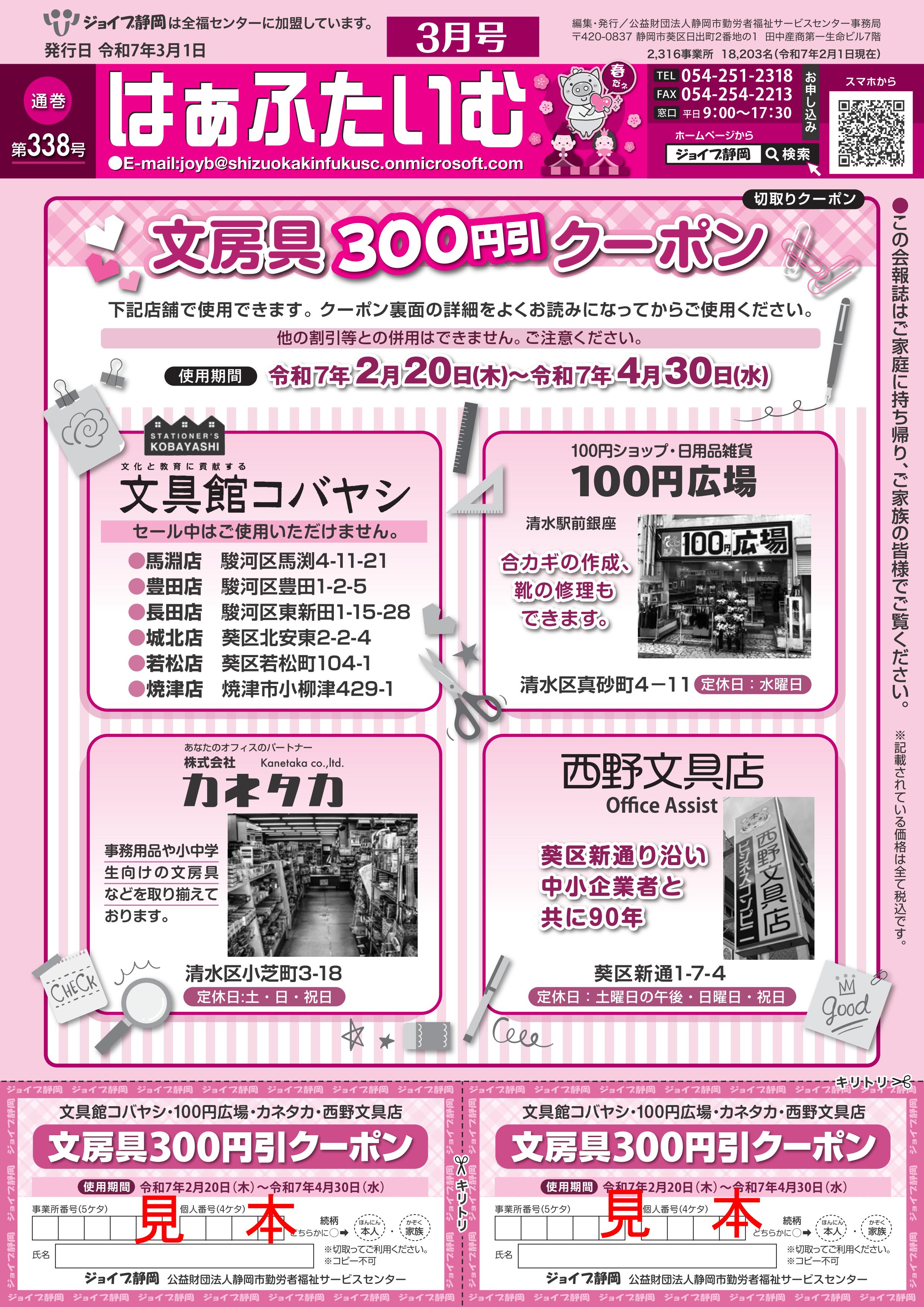 近くのお店で使える切り取りクーポンを会報誌と共にお届けします。
