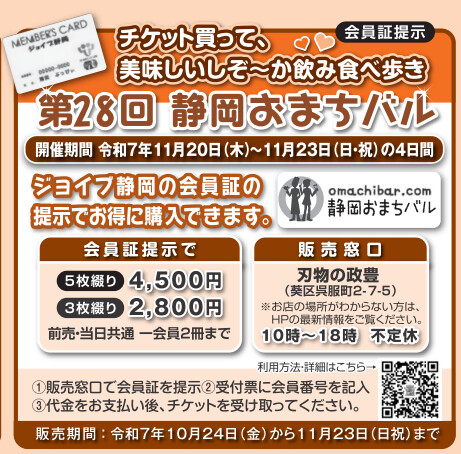 非会員でも利用可。ジョイブ静岡の窓口で販売。